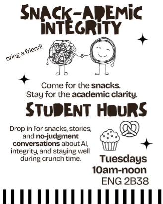 Looking ahead, we’re expanding our reach through new platforms and resources. We’re developing a Canvas course with teaching materials for faculty and staff, a PAWS page where students can easily find campus supports, and an anonymous Brains and Balance site where students can submit questions about academic integrity to be answered in the student newsletter. Together, these initiatives will continue to strengthen our culture of integrity and wellness across the College.